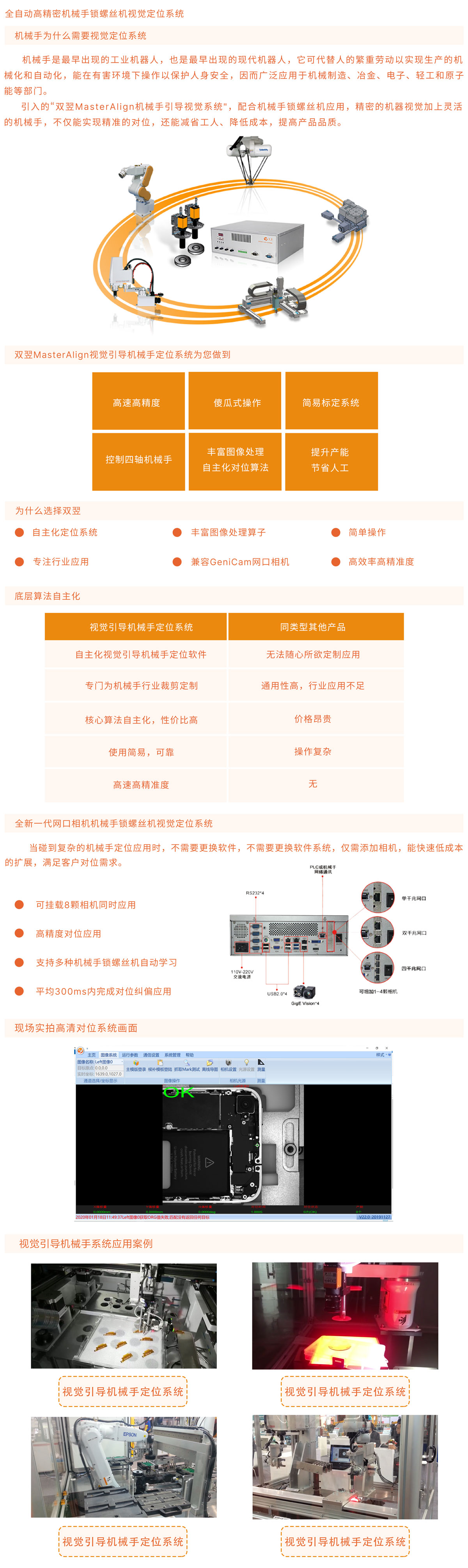 引入的“雙翌MasterAlign機械手引導視覺系統",配合機械手鎖螺絲機應用,精密的機器視覺加上靈活的機械手,不僅能實現精準的對位,還能減省工人、降低成本,提高產品品質。