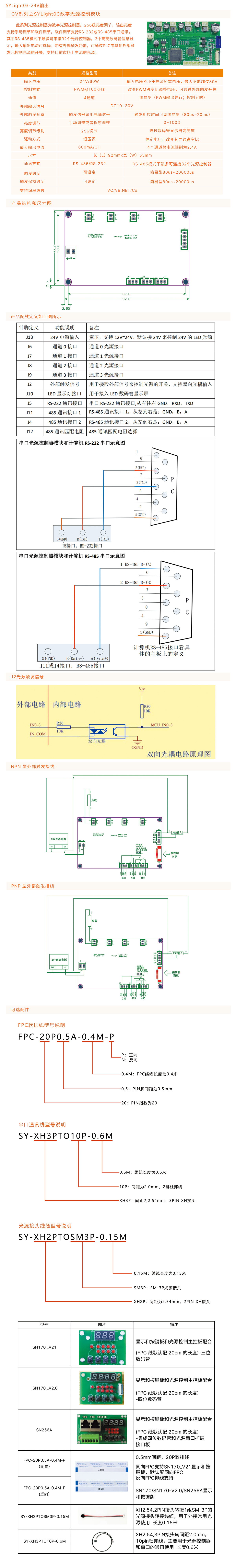 此系列光源控制器為數字光源控制器。256級亮度調節,輸出亮度支持手動調節和軟件調節,軟件調節支持RS-232或RS-485串口通訊,其中RS-485模式下最多可串接32個光源控制器。3個高亮數碼管信息顯示,最大輸出電流可選擇。帶有外部觸發功能,可通過PLC或其他外部觸發元控制光源的開關,支持目前市場上主流的光源。