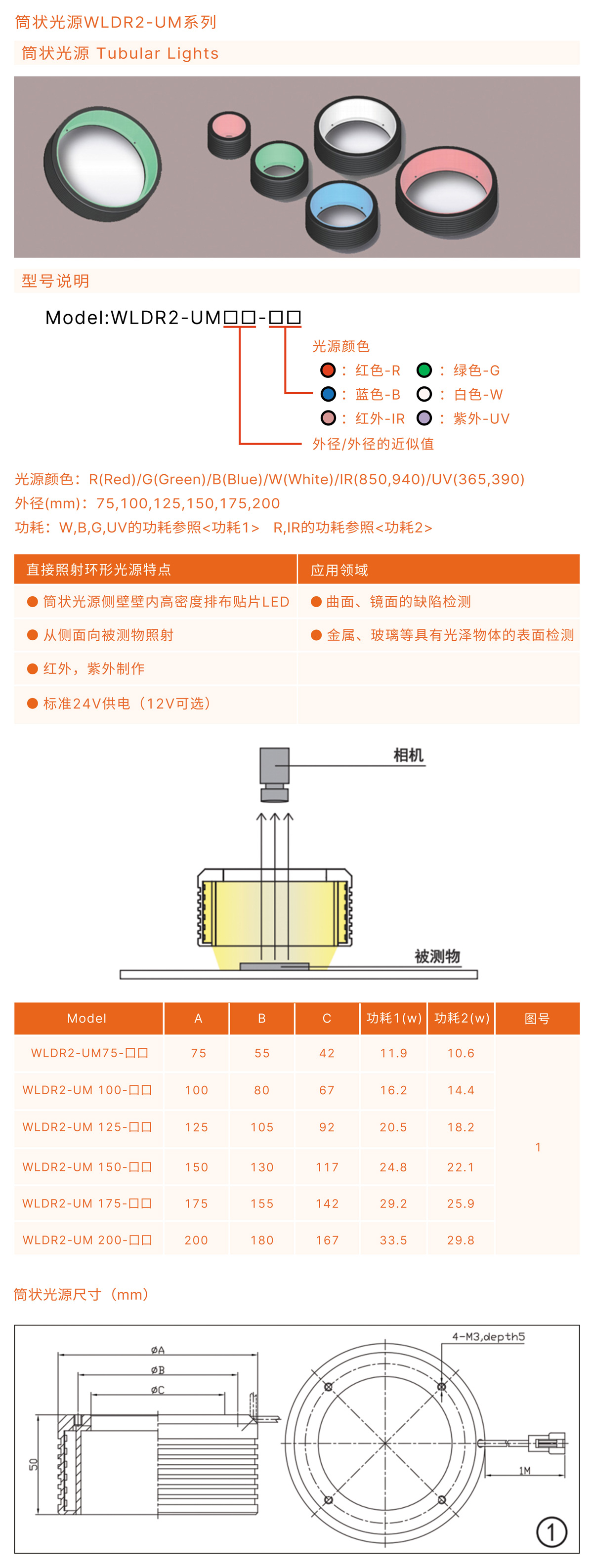 筒狀光源側壁壁內高密度排布貼片LED,從側面向被測物照射