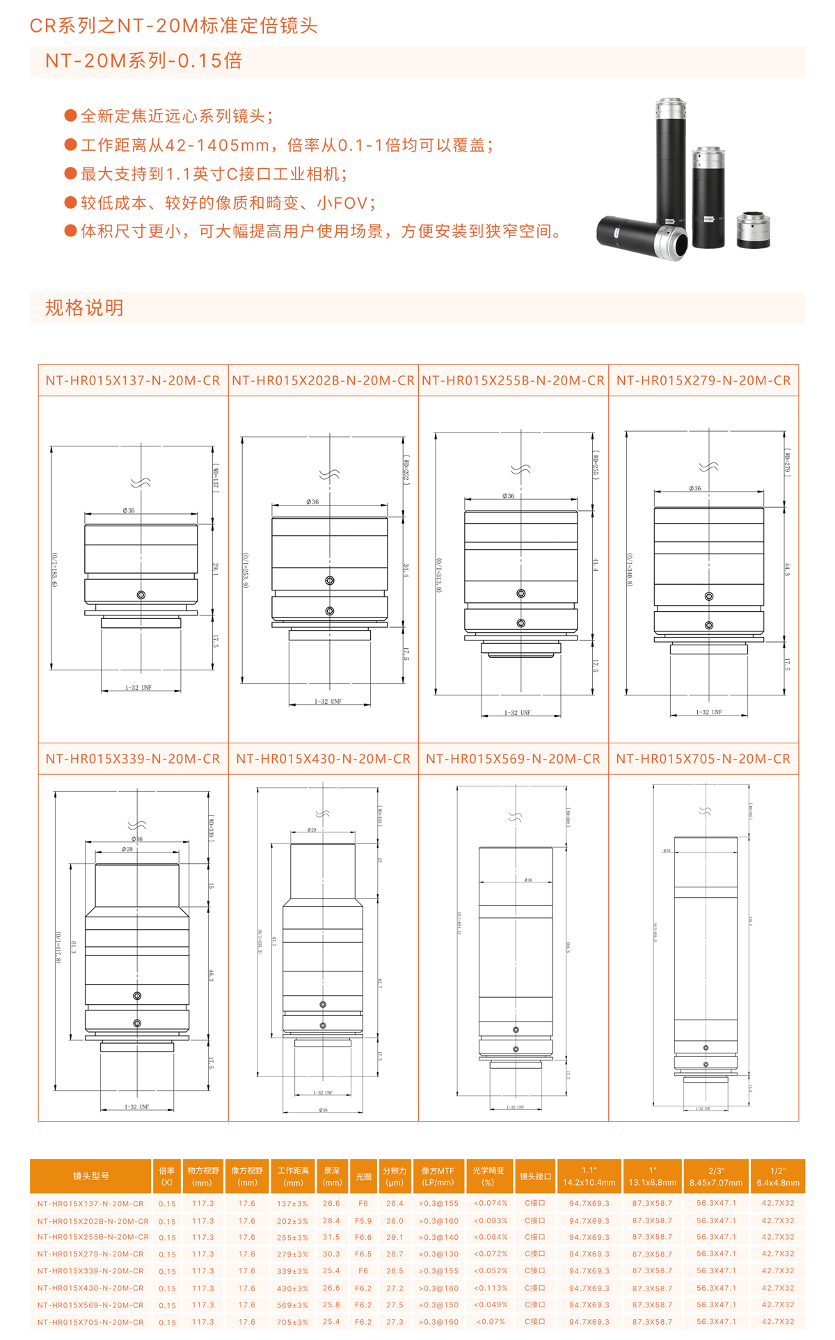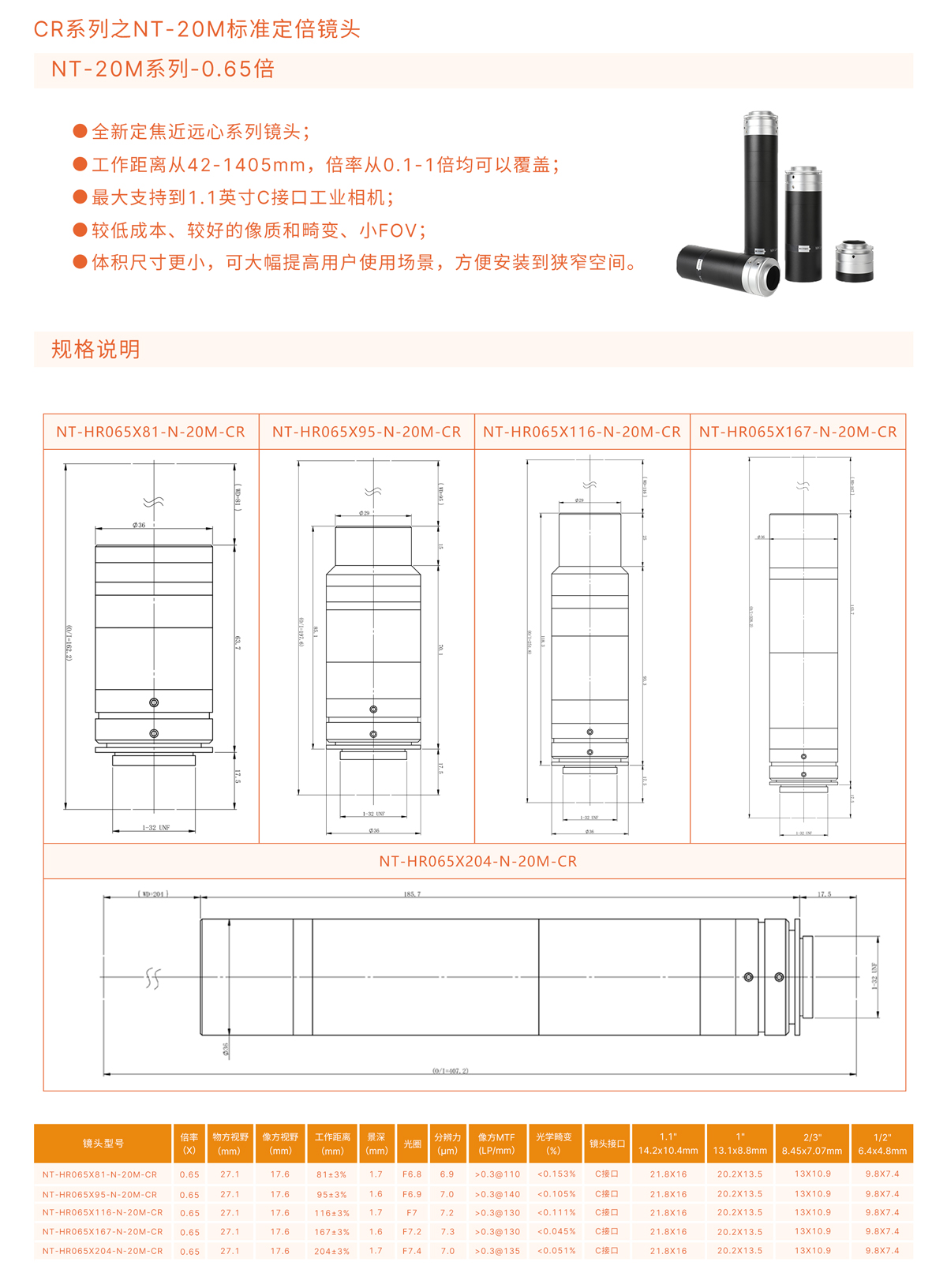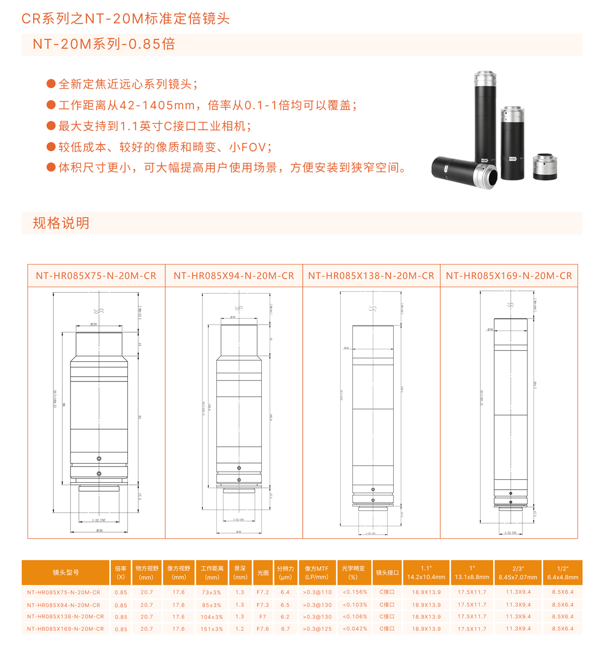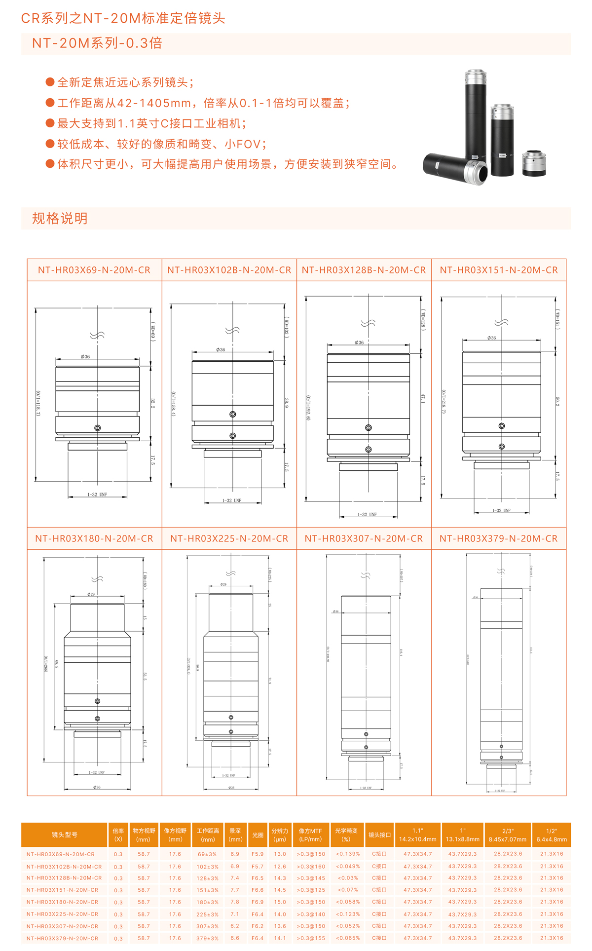 工作距離從(cong)42-1405mm,倍率從(cong)0.1-1倍均可以覆蓋(gai);