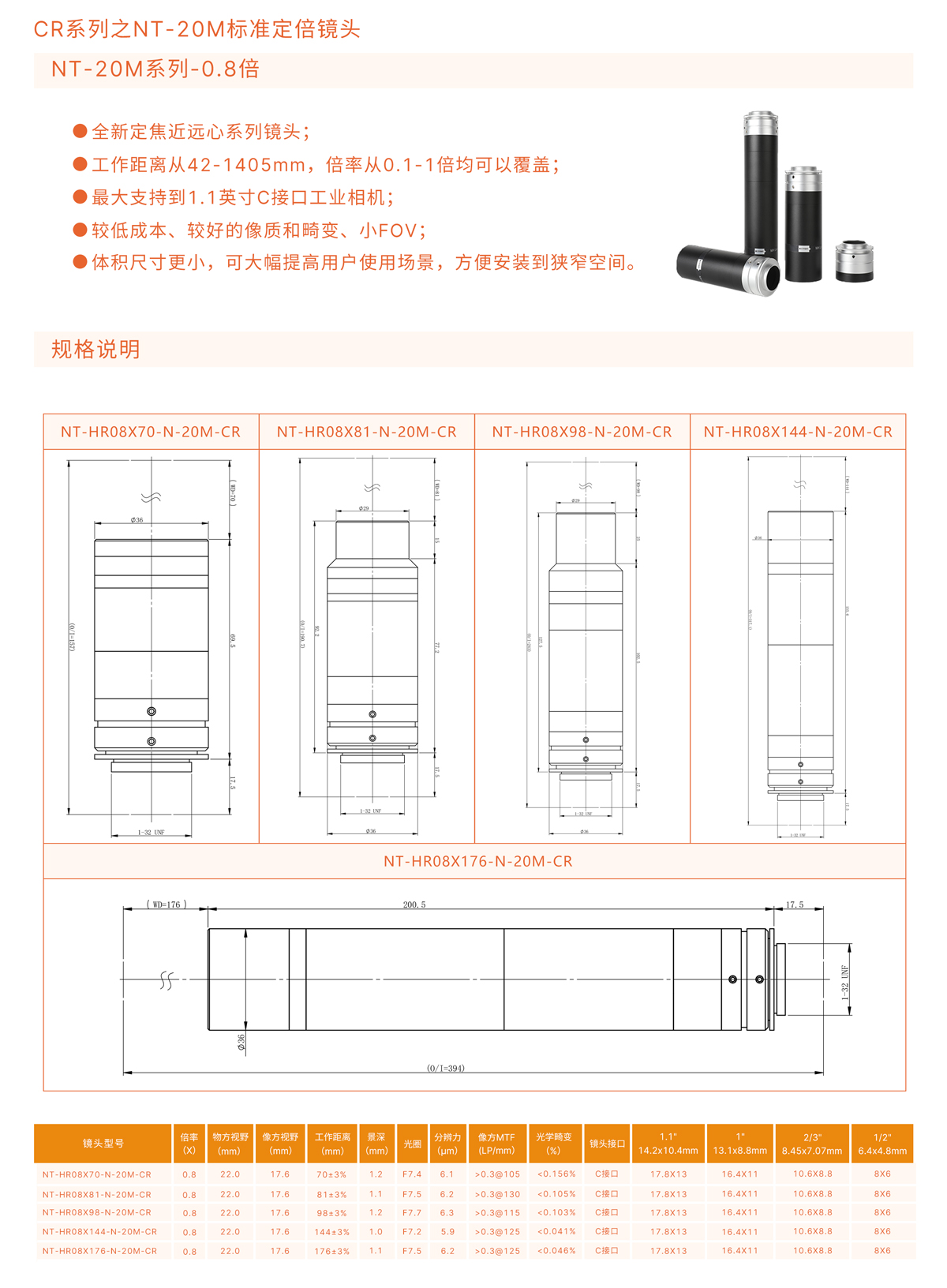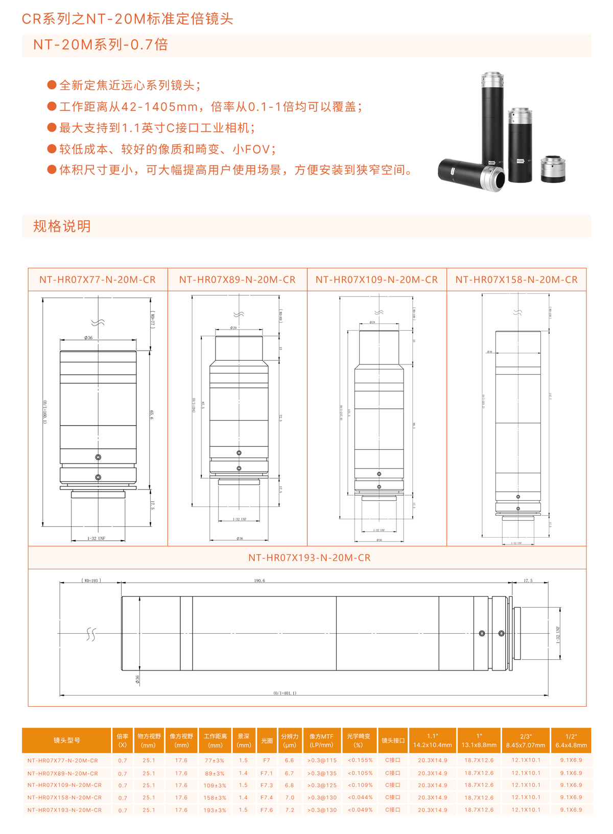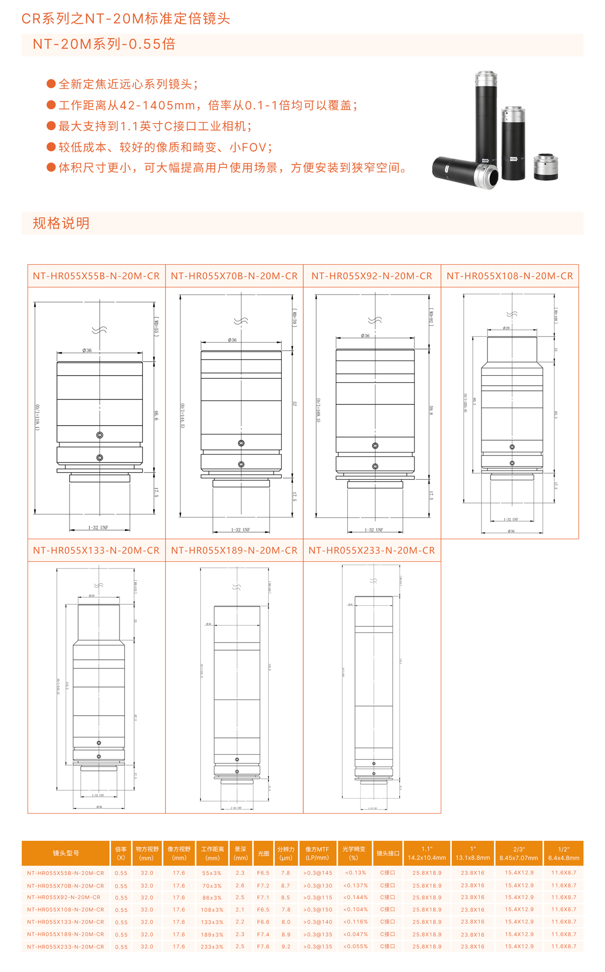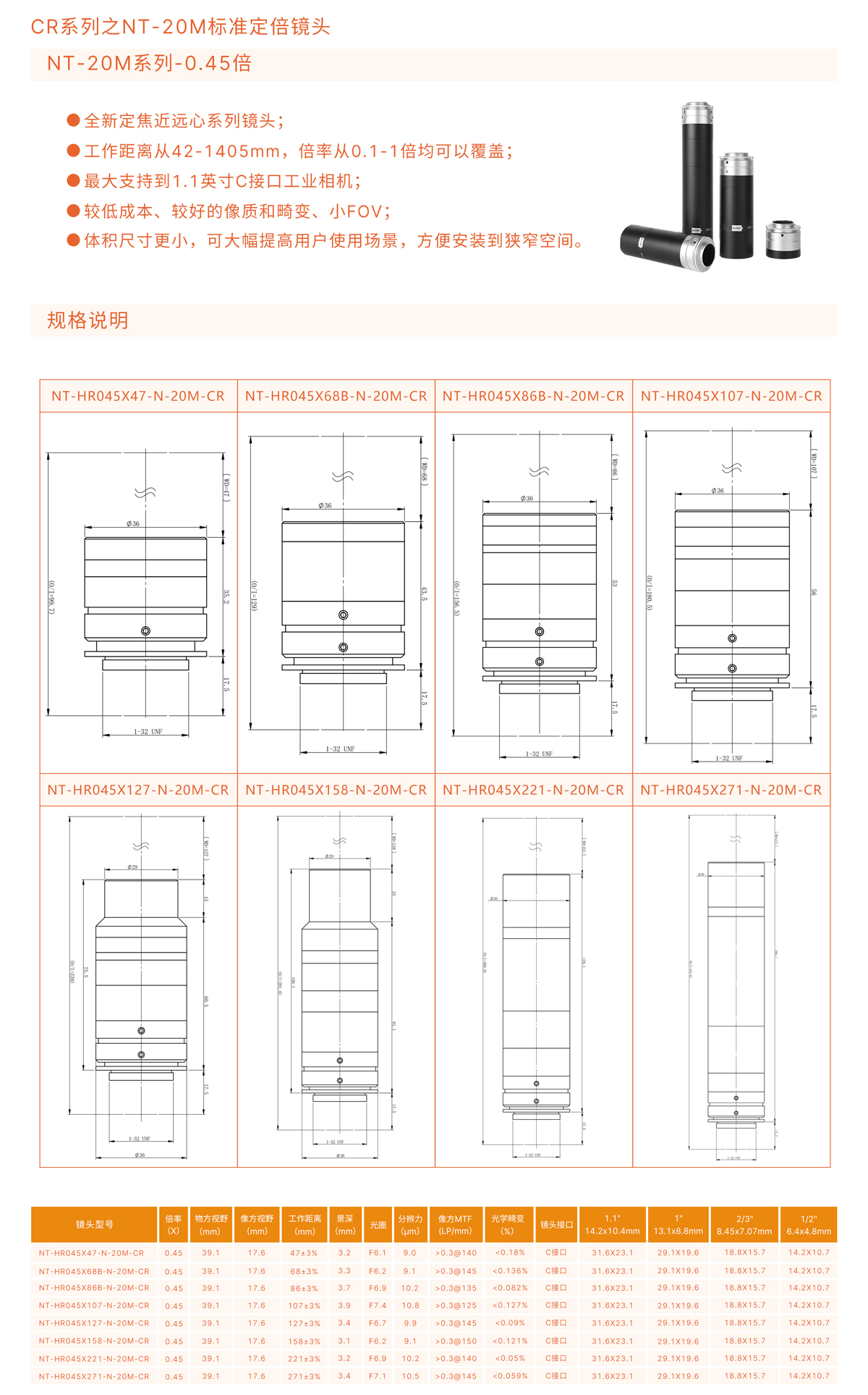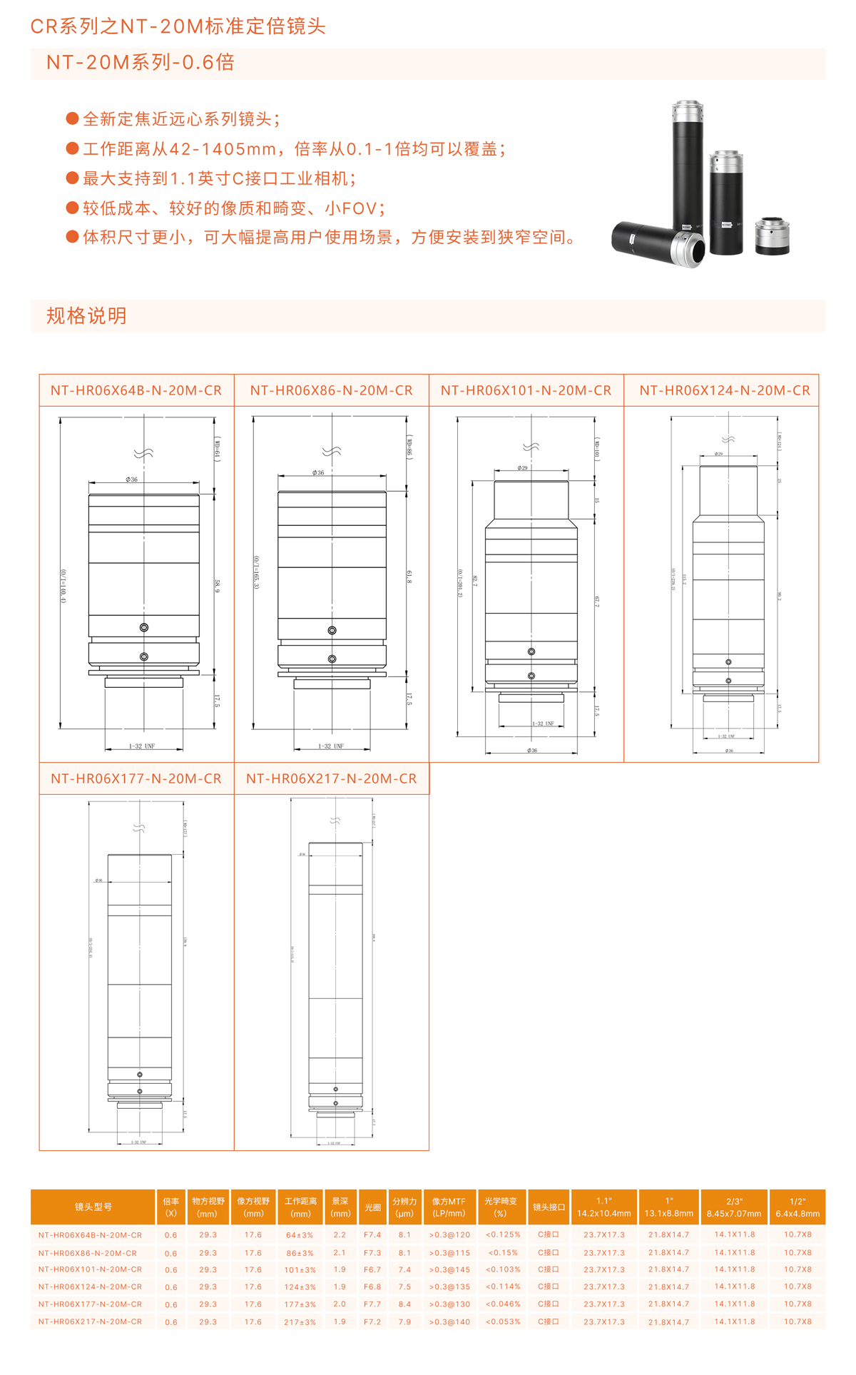 工作距離從(cong)42-1405mm,倍率從(cong)0.1-1倍均可以覆蓋(gai);