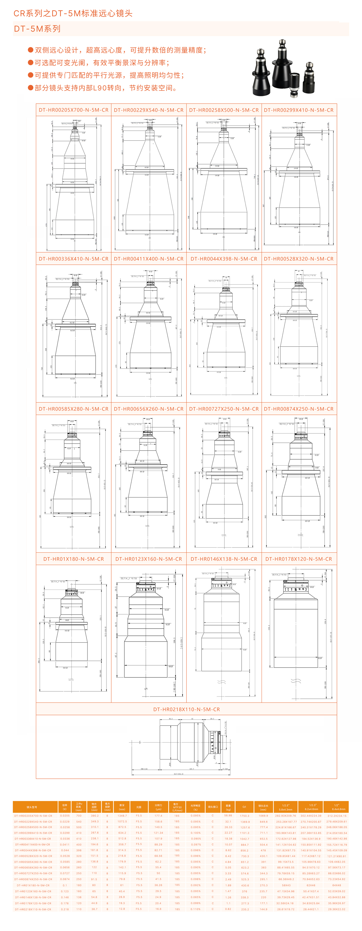 部分鏡頭支持內部L90轉向,節約安裝空間(jian)。雙側遠心設計(ji),超高遠心度,可提升(sheng)數倍的測量精度;