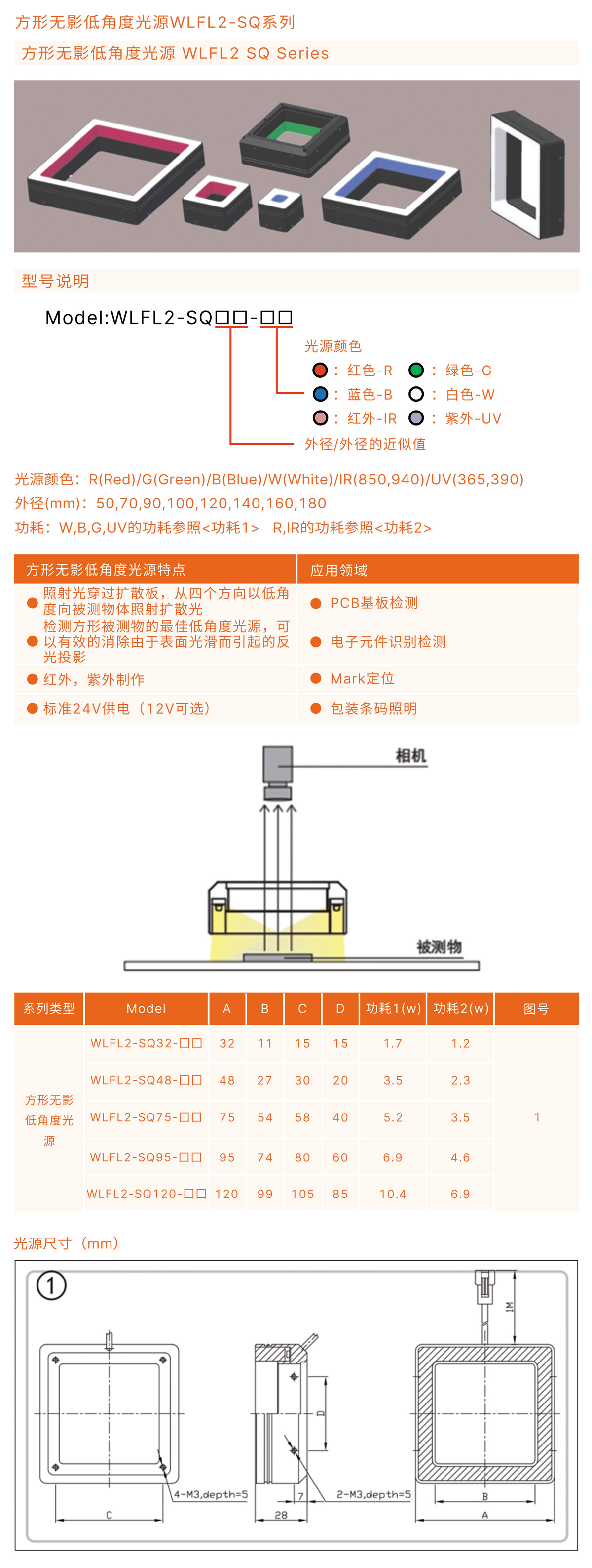 方形無影低角(jiao)度光(guang)源特點(dian):