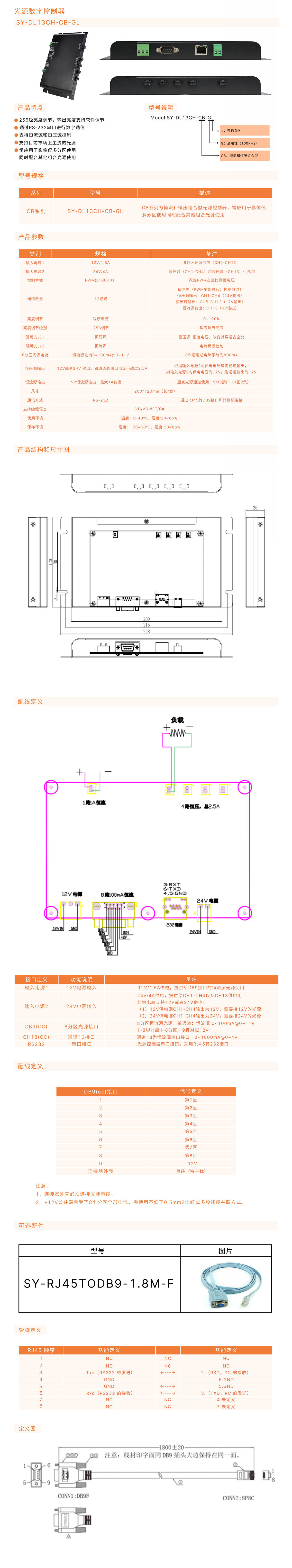 256級亮度調節,輸出亮度支持軟件調節通過RS-232串口進行數字通信