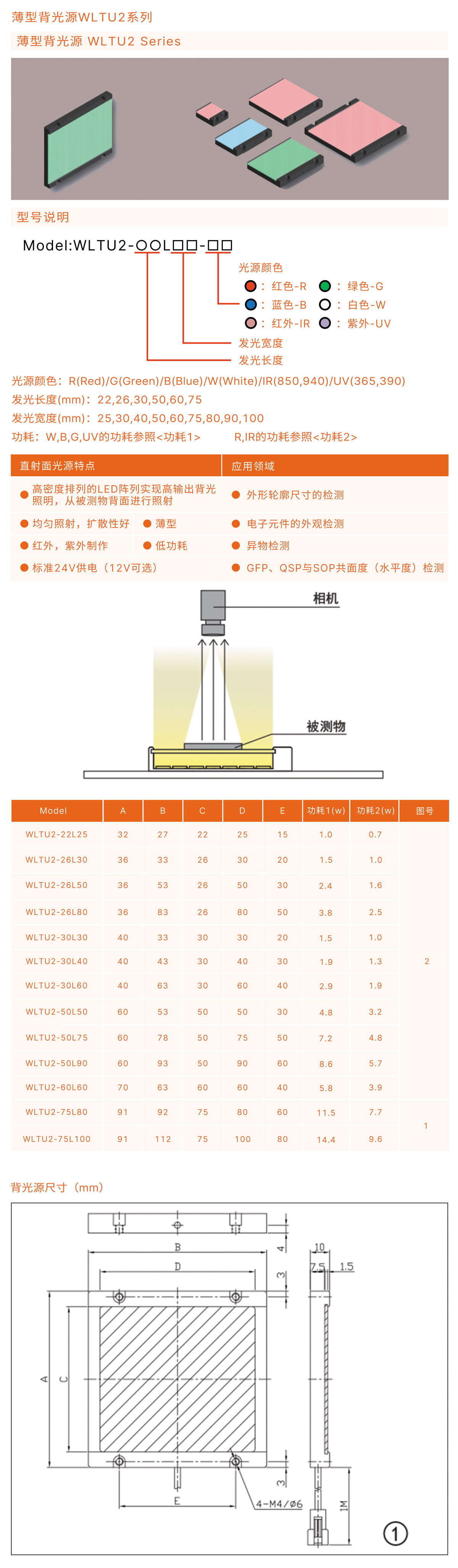 高密度排列的LED陣列實現高輸出背光照明,從被測物背面進行照射,均勻照射,擴散性好,低功耗薄型直射面光。