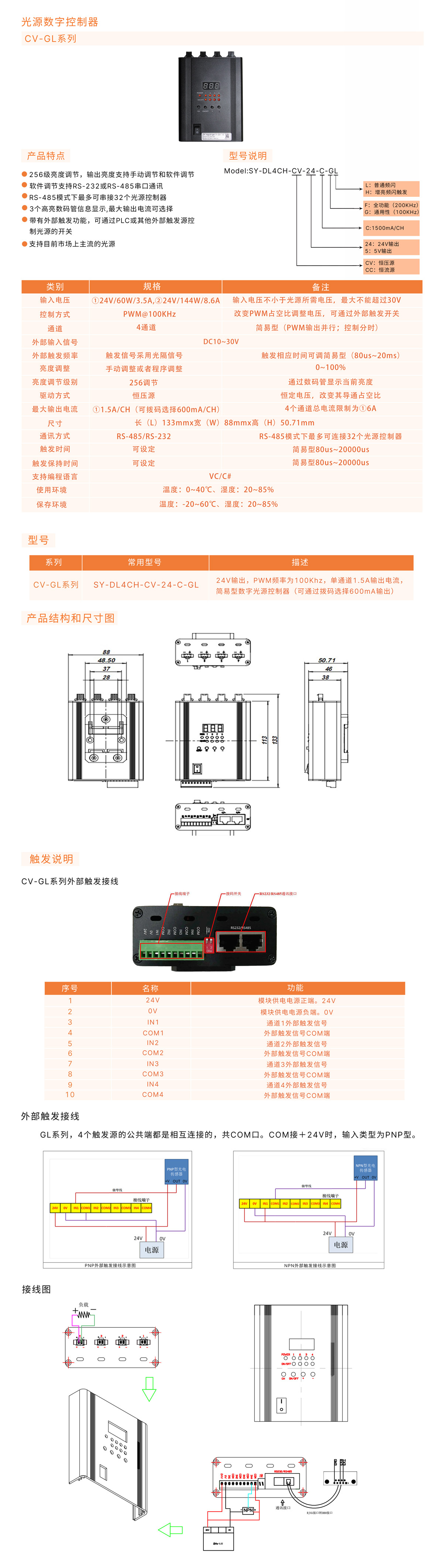 ●帶有外部觸發功能,可通過PLC或其他外部觸發源控制光源的開關
