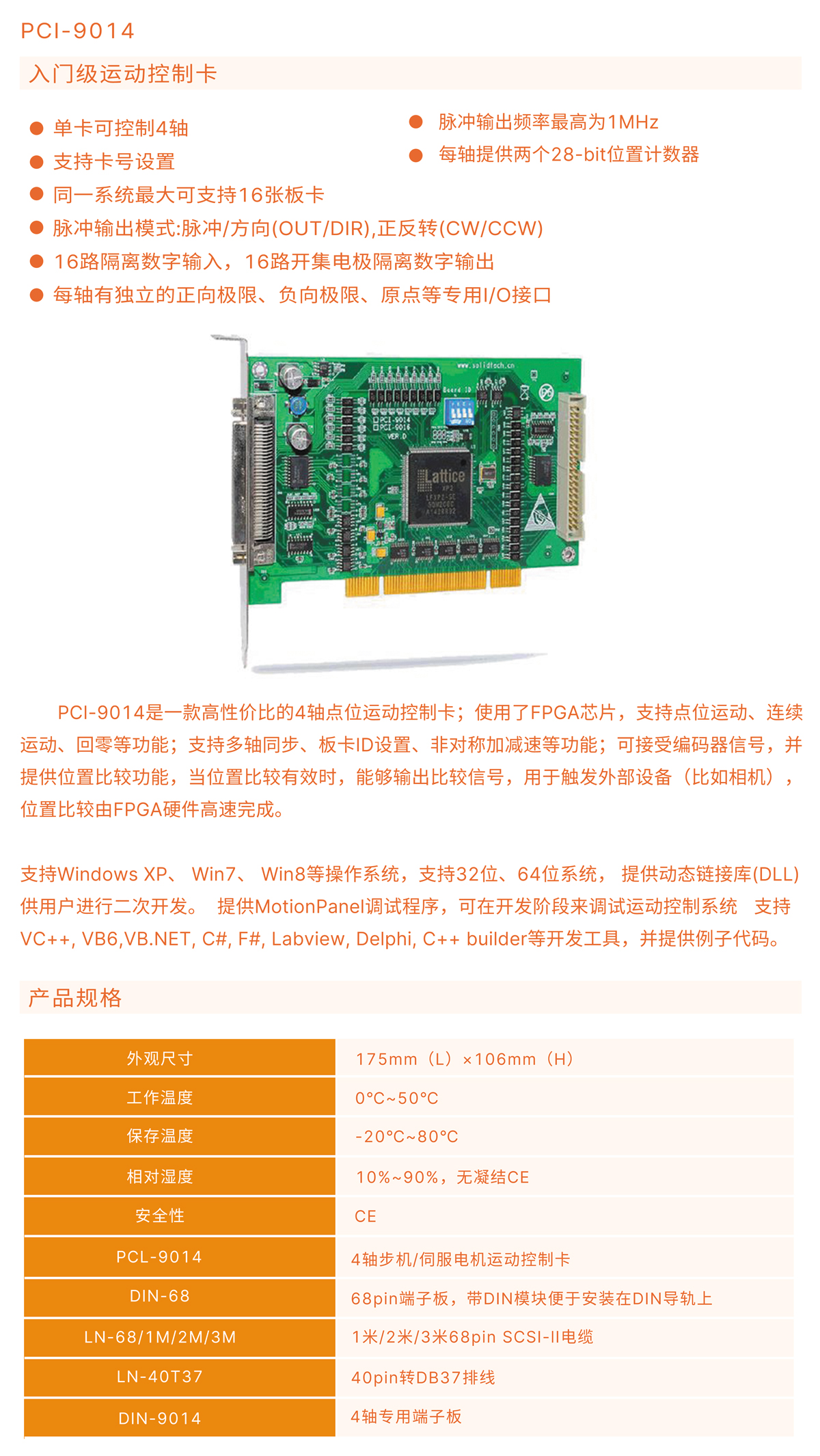● 每軸有獨立的正向極限、負向極限、原點等專用I/O接口● 單卡可控制4軸