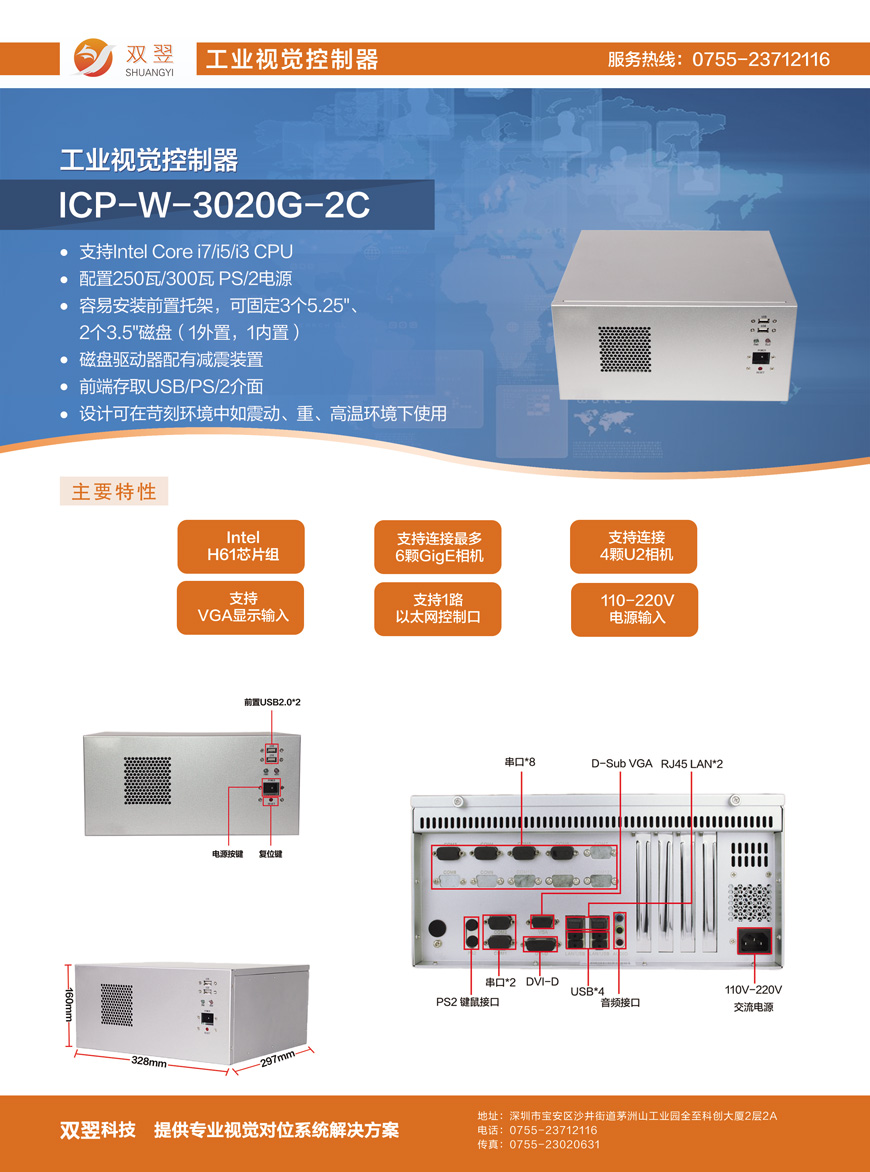 ICP-W-3020G-2C視覺(jue)控制(zhi)器磁盤驅動器配有減震裝(zhuang)置,前端存(cun)取(qu)USB/PS/2介面(mian),設計可在(zai)苛刻環境中如震動、重、高溫環境下使(shi)用(yong)。